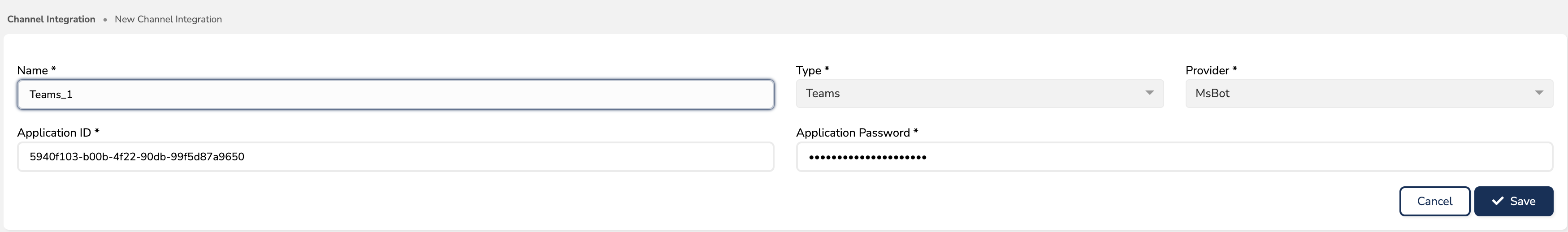 Tüm Azure kanalları için Knovvu entegrasyonu ortak olup sadece "Type" seçimi farklılık göstermektedir.