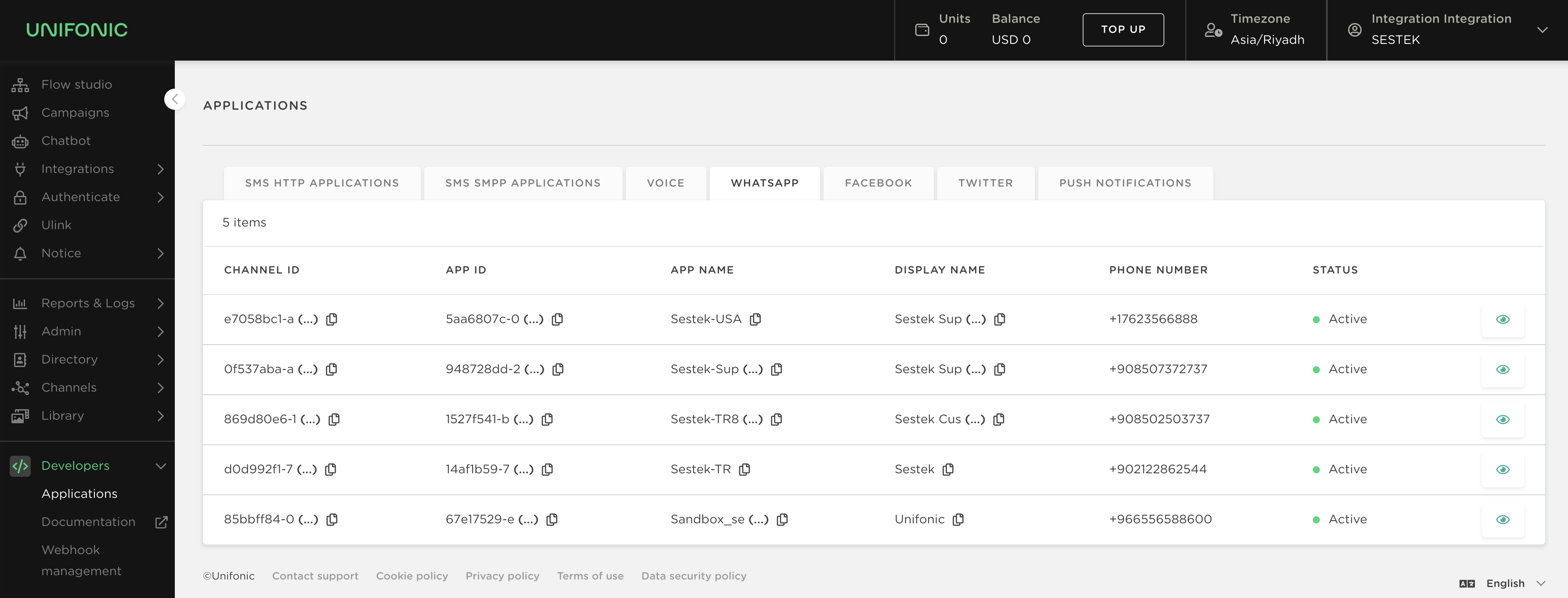 Portal Adresi : https://cloud.unifonic.com/